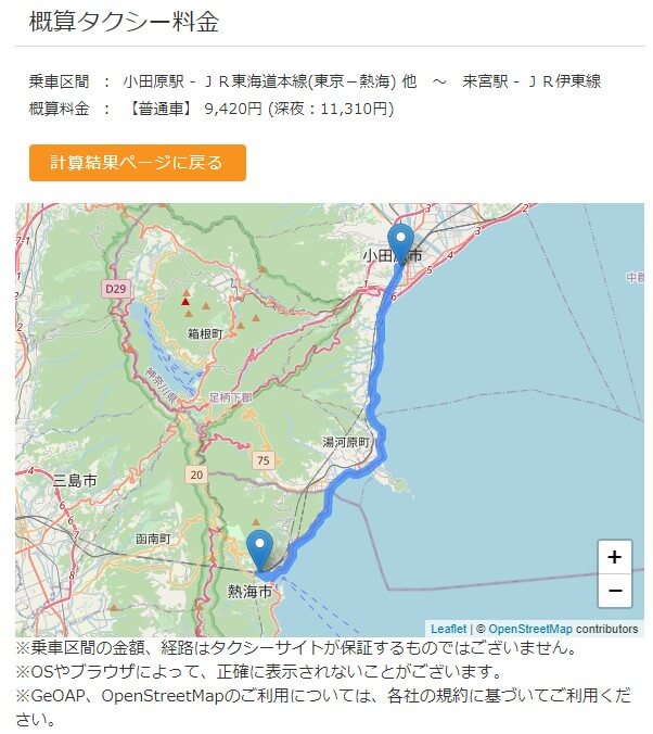 こちらのサイトでタクシー代も調べてみましたが、1万円行かないんですよね。別に電車にこだわらなくてもこのくらいの値段ならタクシー使えばよかったんじゃないでしょうかね?