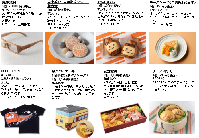 エキュート立川一部ショップにおいて中央線開業 130 周年をテーマにした記念商品(デリ&スイーツ 等)を販売します。 販売期間は4月1日(月)~4月21 日(日)※アンファンは4月14 日(日)まで