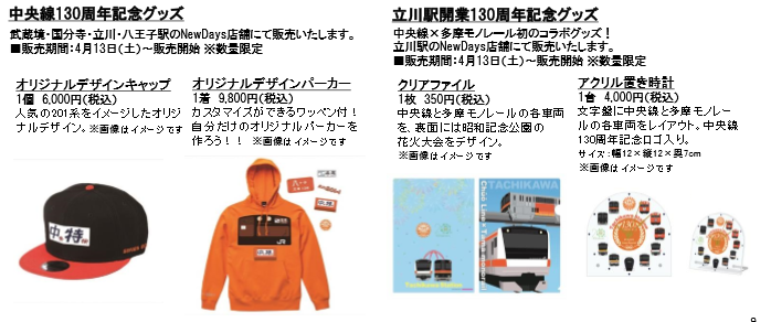 また開業駅限定グッズ(武蔵境駅・国分寺駅・立川駅)の販売も行います。 販売期間は4月13 日(土)から、無くなり次第終了です。