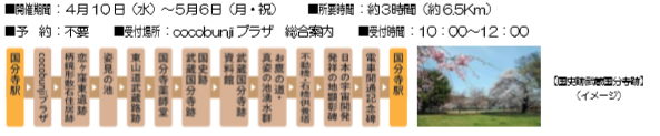 また、4月 10 日(水)~5月6日(月・祝)には駅からハイキング 「【JR 国分寺駅開業 130 周年記念】こくぶんじの恋と歴史と文化をめぐる春の探訪」が開催されます。