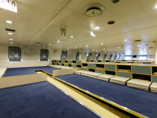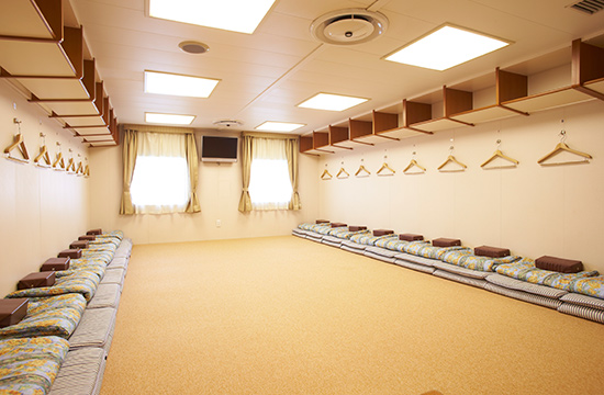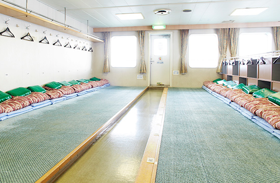 一番安いこちらの2等室は大広間形式になっており、いい場所は早いもの勝ちのようです。(混雑期は指定)