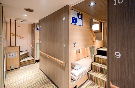 リーズナブルな価格で利用できる、寝台部屋も用意されています。ただし、 予約時にお部屋の御指定は出来ません。乗船当日の窓口手続き時に部屋番号とベッド番号を指定いたします。 これ以外の客室についてはこちらをご覧ください。