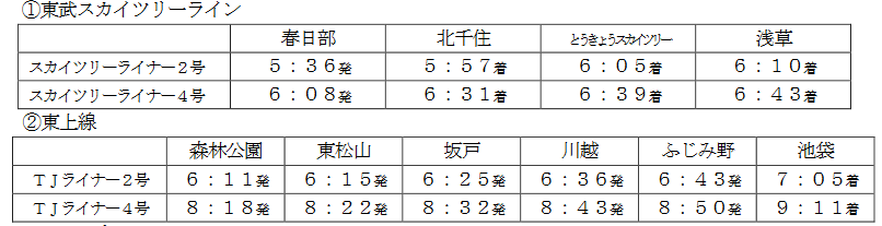 東武鉄道では、東京都が推進するスムーズビズに合わせて、快適通勤を応援する時差Biz快適通勤利用促進「乗得ポイントキャンペーン」を実施します。キャンペーン期間中、対象の「スカイツリーライナー」の特急券および「TJライナー」 の座席指定購入に「チケットレスサービス」をご利用かつ東武カードでクレジット決済いただいた方に10 倍の「乗得ポイント」をプレゼントします。お得なこの機会に、ぜひご利用ください。対象期間は7/22~9/6の平日、対象列車は以下の通りです。