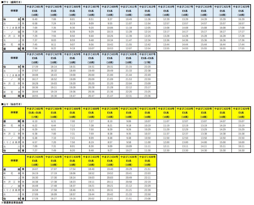 仙台~一ノ関~盛岡間の臨時快速の運行は21日まで