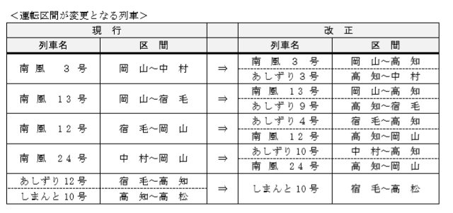 JR四国 – 平成31年3月ダイヤ改正について(PDF)