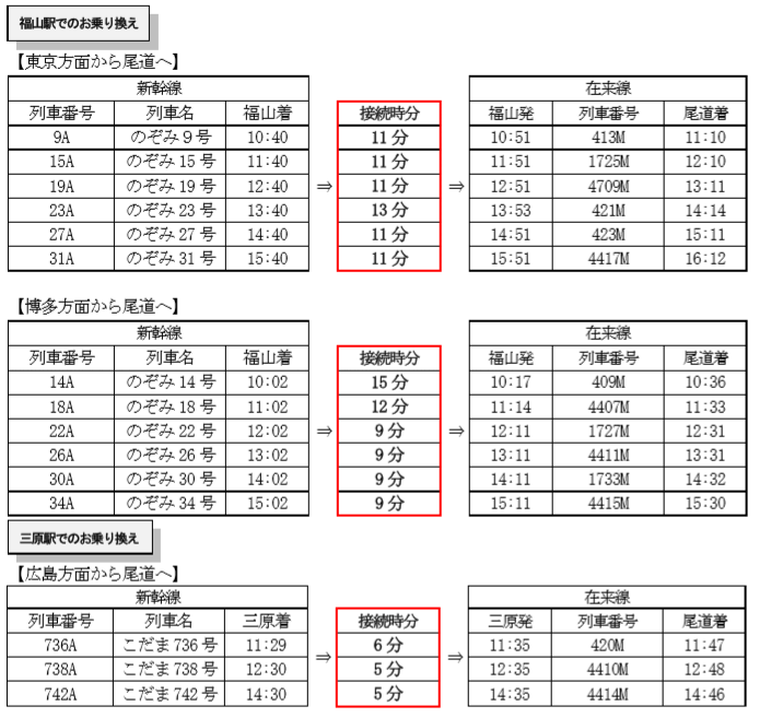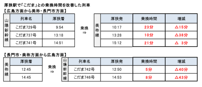 厚狭駅での新幹線と在来線の乗換時間を一部列車で改善します。
