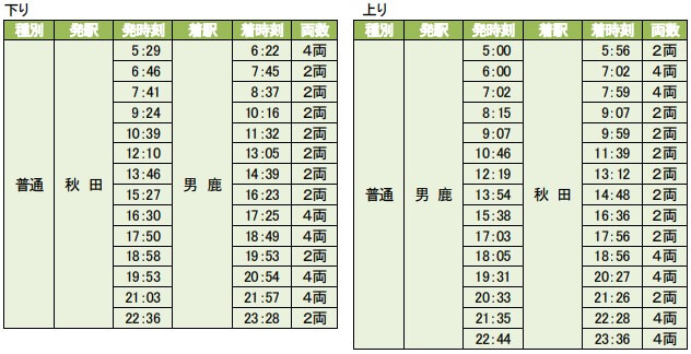 - 羽越本線では道川~秋田間の下り1本・吹浦~酒田間の上り1本の運行を取りやめるとともに羽後本荘~秋田間の快速列車を普通列車化します。