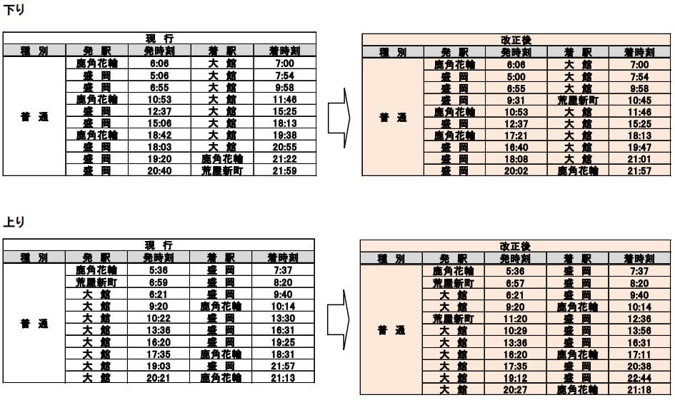 - 盛岡~日詰間の1往復について日中時間帯から朝時間帯の運行とします。