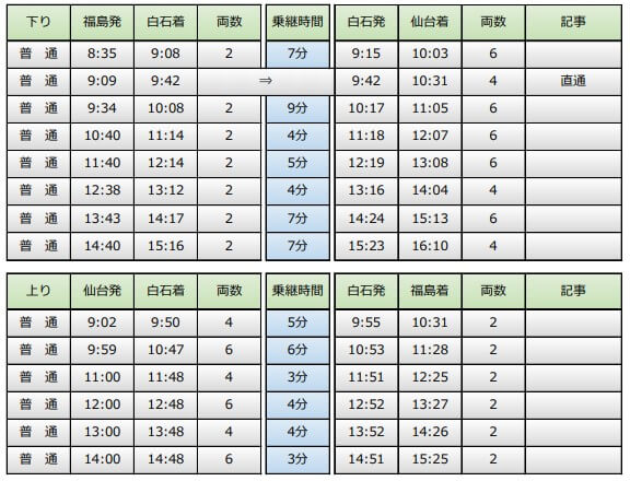 福島~仙台間では日中時間帯において輸送障害発生時の影響範囲を小さくするため、福島~白石間と白石~仙台間で運転区間を分離し、同じホームで相互に乗り継ぐ体系とします。これに伴い、快速「仙台シティラビット」を各駅停車とし、通過となっている各駅の利便性を向上します。