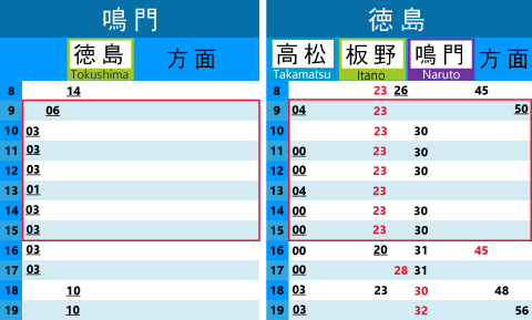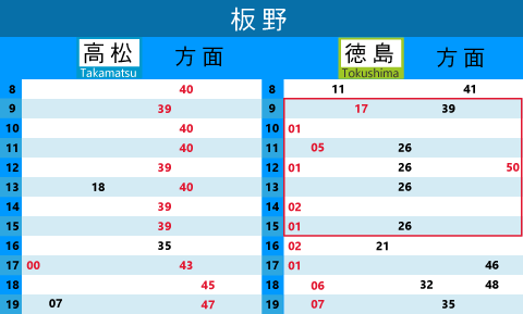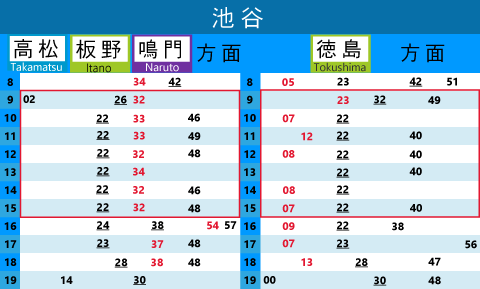 | 4333D | 板野 | 14:43 | 徳島 | 15:15 |