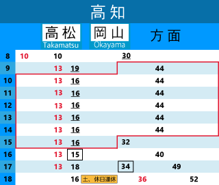 | 4380D | 徳島 | 21:18 | 板野 | 21:48 |