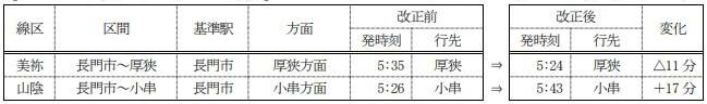 山口線では新山口~山口間の2往復と津和野~益田間の1往復の運転を取りやめます。また、特急ス-パーおき号およびSLやまぐち号を除き終日ワンマン列車として運転します。