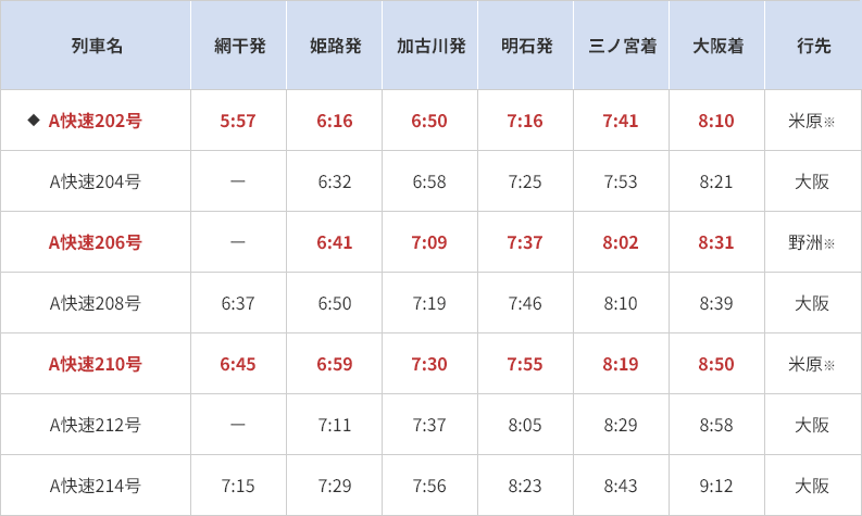 - 平日の朝夕通勤時間帯に、網干・姫路駅~大阪・新大阪駅を結ぶ通勤特急「らくラクはりま」を1往復増発します。