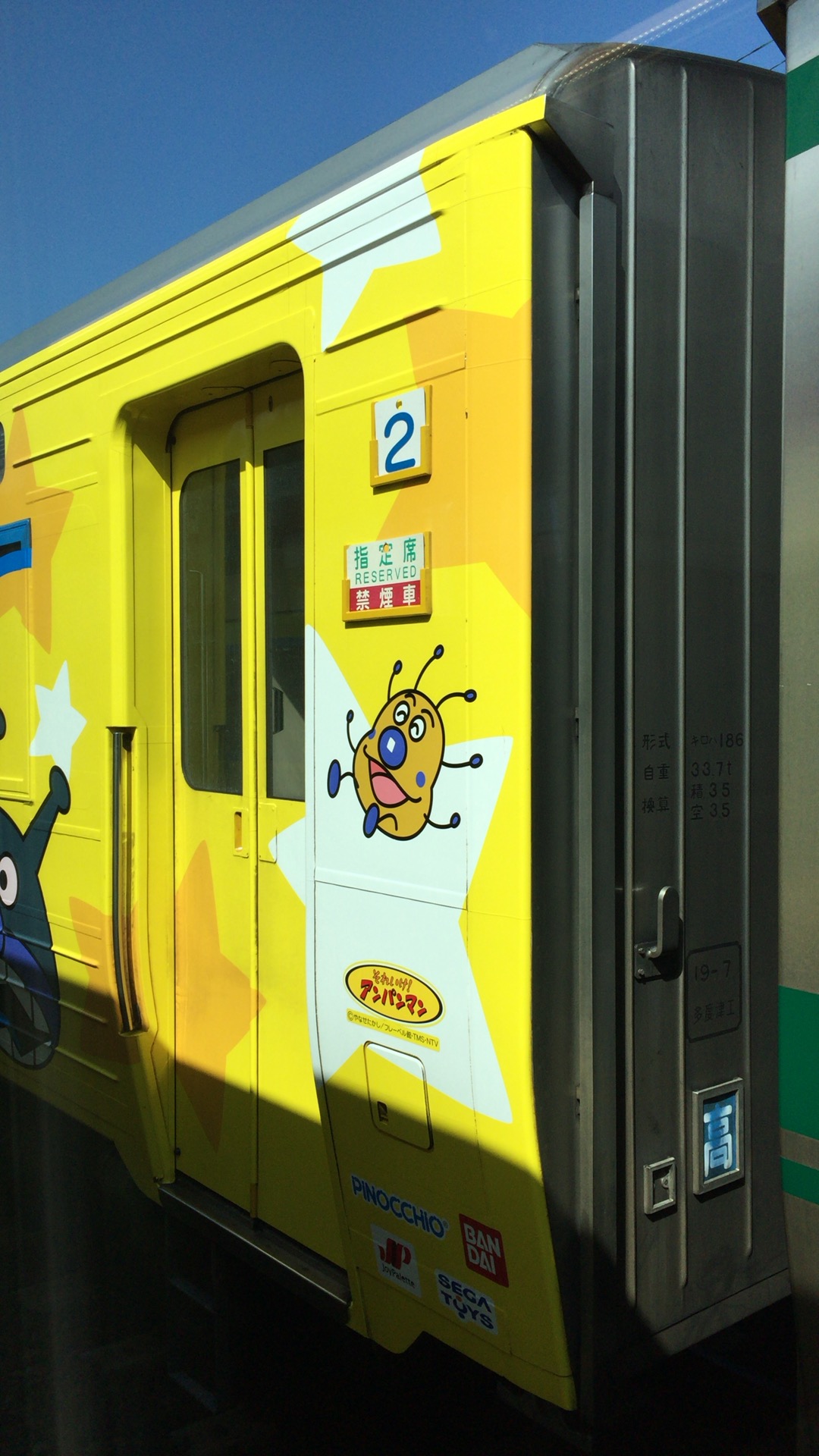 途中の屋島駅で「ゆうゆうアンパンマンカー」を連結したキハ185系で運用されている「うずしお」を撮りました。