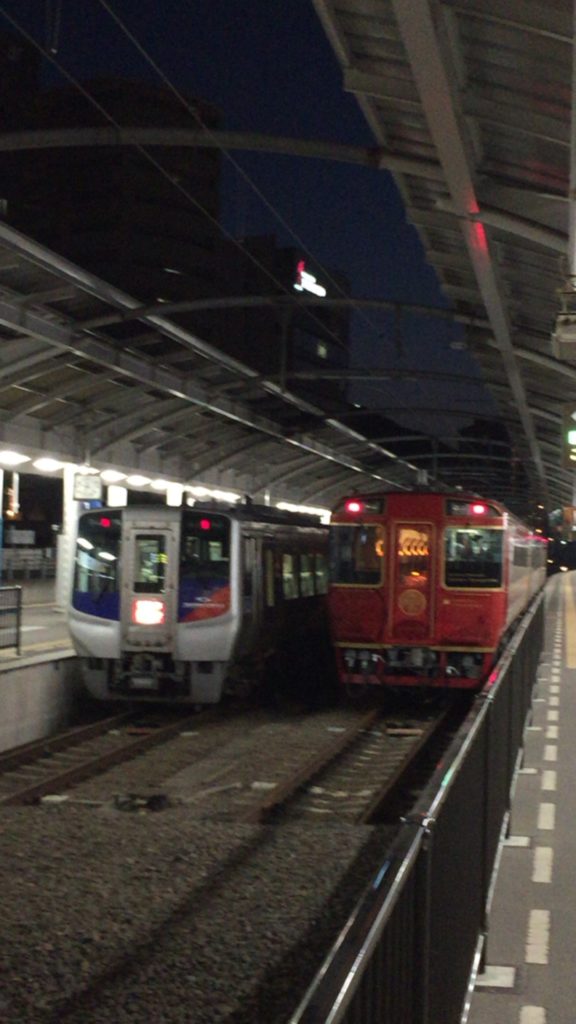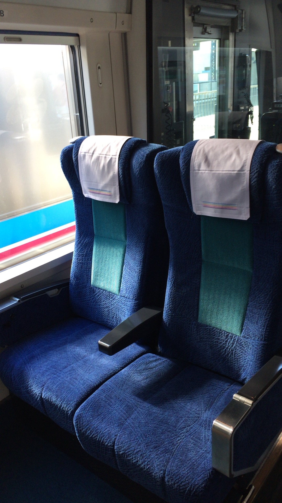 高松駅からは「いしづち」に乗車しました。これも新型車両で、途中の宇多津駅から「しおかぜ」のグリーン車に乗り換えました。