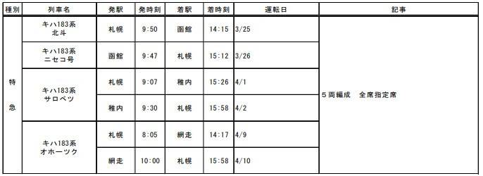 - JR北海道 – 春の臨時列車のお知らせ~3月から6月に運転する列車です~