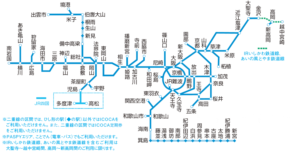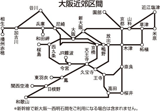 - 大阪近郊区間内の駅と右記の在来線特急列車停車駅相互間をご利用の場合(サンダーバード、しらさぎ、くろしお)