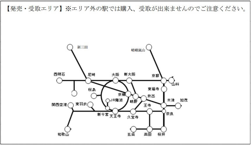 発売期間は9/18~12/19で、利用可能日は9/19~12/20の土休日です。利用開始日の1か月前から前日までJR西日本ネット予約サイト「e5489」や「発売・受取エリア内」の主な駅の「みどりの券売機」で発売します。切符の受け取りは「発売・受取エリア内」の主な駅のみどりの窓口かみどりの券売機で行えます。