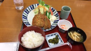 お昼ご飯は米子駅の食堂でアジフライの定食?を食しました。