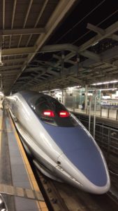 今回は定刻通りに新大阪駅に到着したので、500系「こだま」に乗れました。車体が丸いせいなのか、圧迫感が半端なかったです…